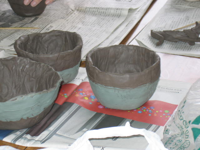 今回は、新聞を丸めて「型」を作り、好きな形の器を作りました。