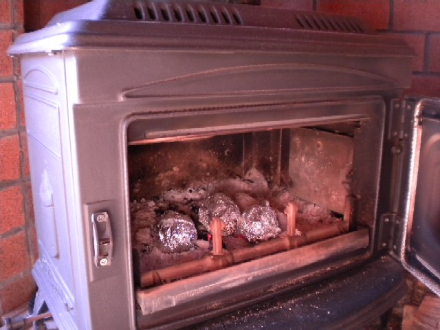 ストーブの‘おき’が残っていたので、焼き芋を作ってみました。