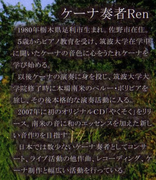 ケーナ奏者RENさんのコンサート