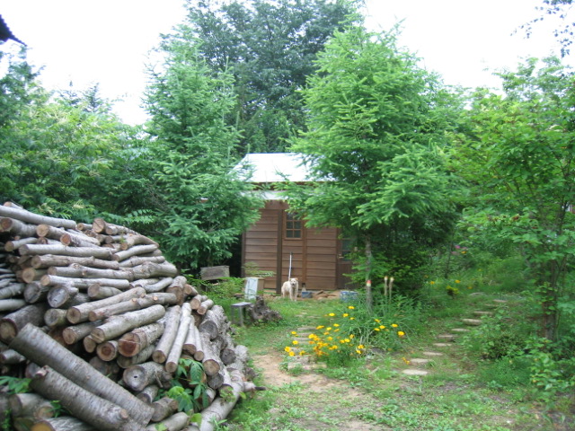私の仕事場。日陰が出来るように木をたくさん植えました。