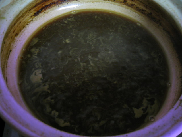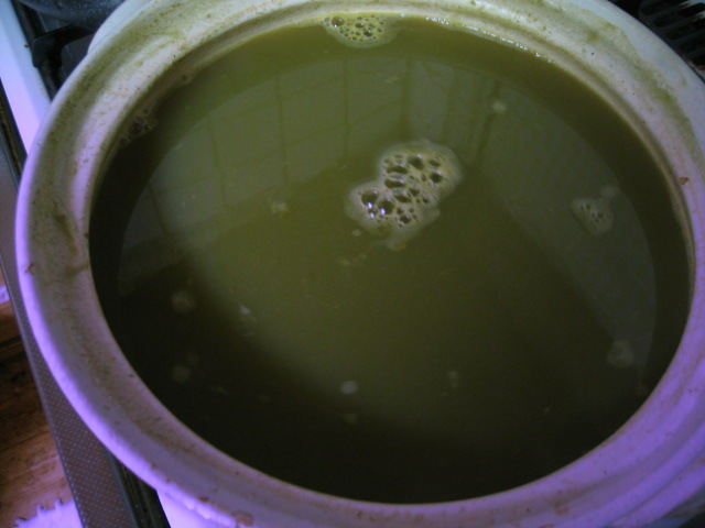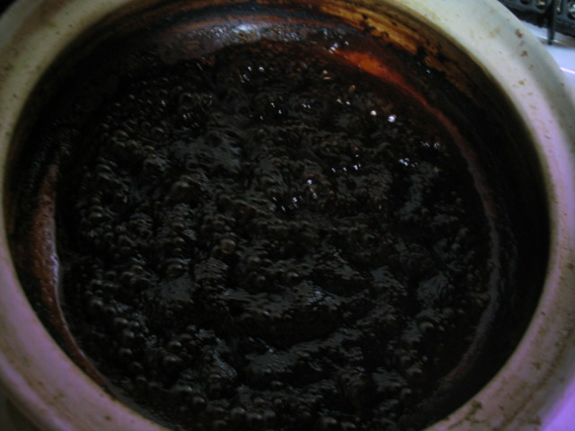 ミキサーで攪拌→漉した汁を煮詰め→水あめ状になったら出来上がり。