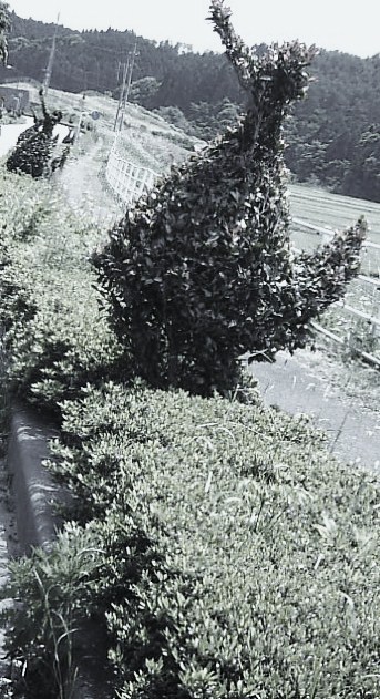 那須町寄居というところでは、道路の両側の植え込みにこんなのが。↓