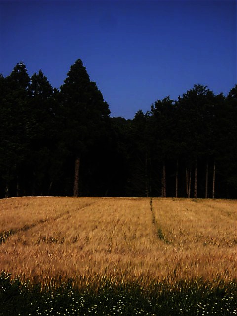 刈り入れを待つオオムギは金色に輝いていました。