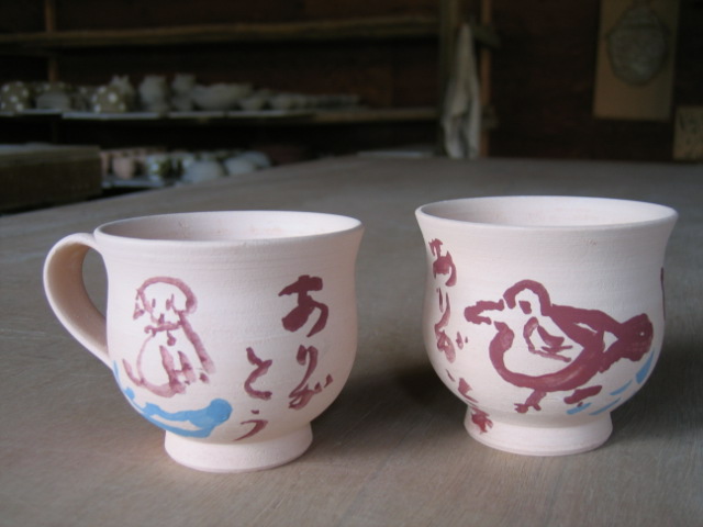 月曜日に陶芸体験をしたいという方からお電話をいただき、ロクロと絵付けをしました。
