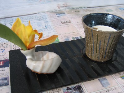 ↓こんなおもてなし、素敵ですね。(ちなみにカップは石川進作デス)