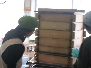 1日目は米を蒸して麹菌を混ぜ、ムロに入れて終了。あと大豆を水に付けておきます。