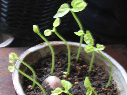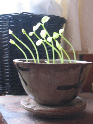 以前コーヒードリッパーを作って失敗したものに小豆の種をまいてみました。
