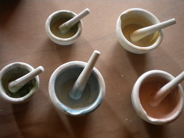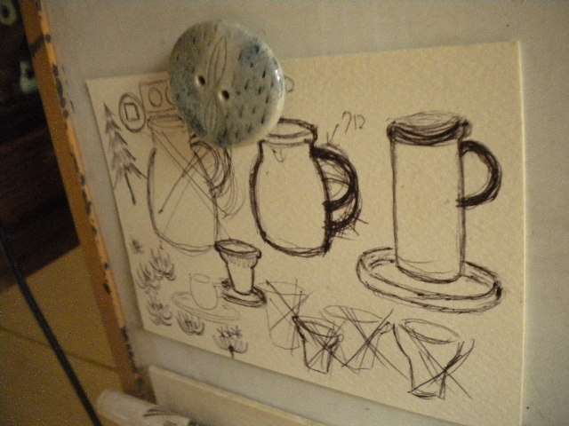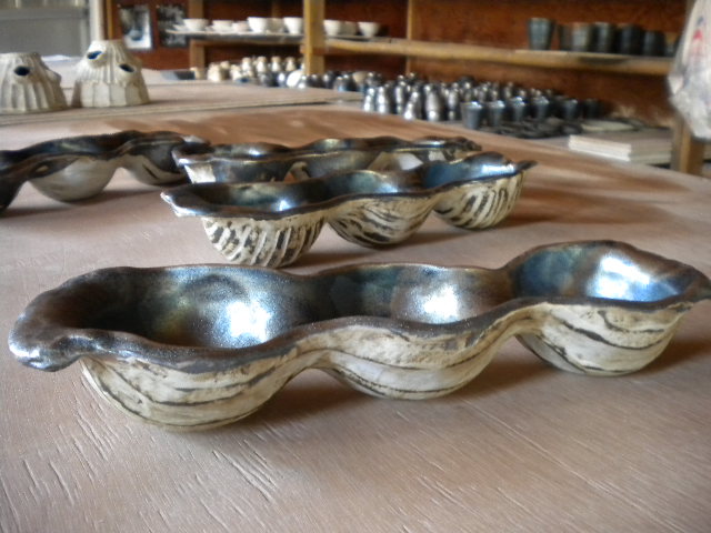 窯の番をしながら、頼まれていたご飯茶碗の模様付けをしました。
