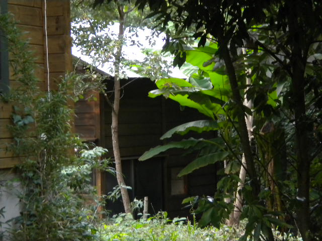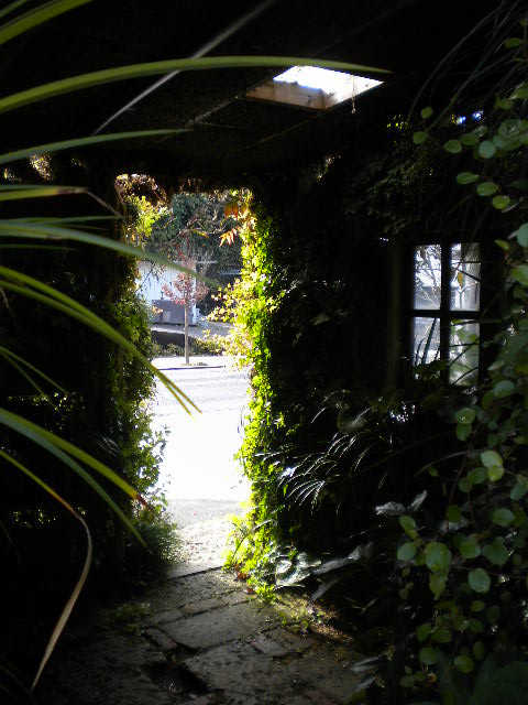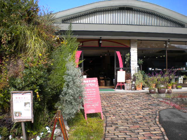 左に見えるのは壁一面に植栽された小屋のような空間。