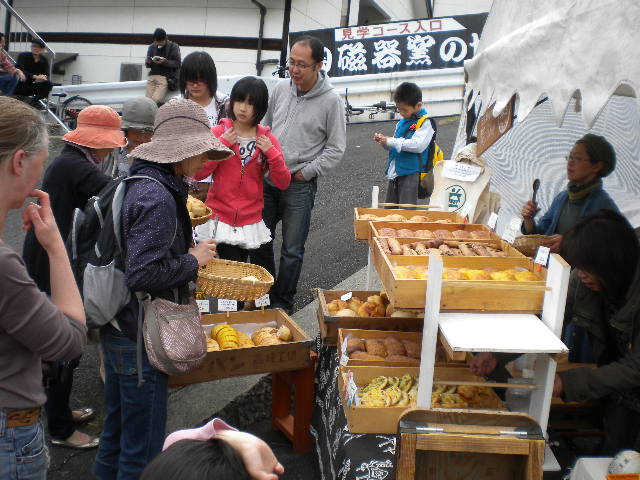 PEACESPACE。9時半ごろ泉さんのパンが到着すると行列が!